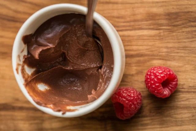 Grown-Up Chocolate Pudding with Raspberries